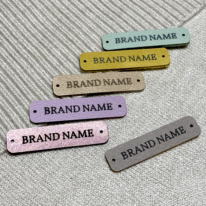 Personalized label EP-M126 made of artificial leather for clothes, bags, shoes and various clothing accessories.