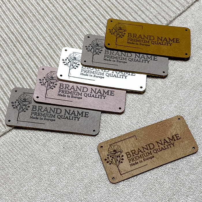 Personalized label EP-M101 made of artificial leather for clothes, bags, shoes and various clothing accessories.