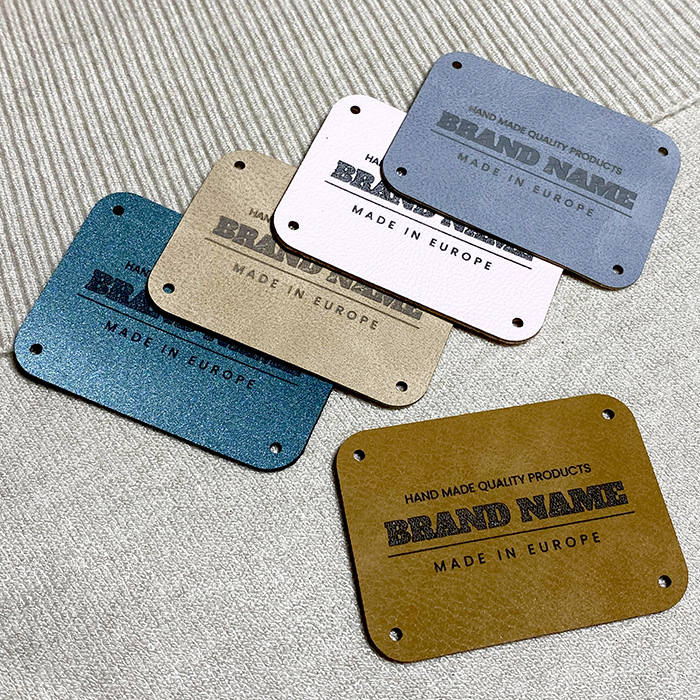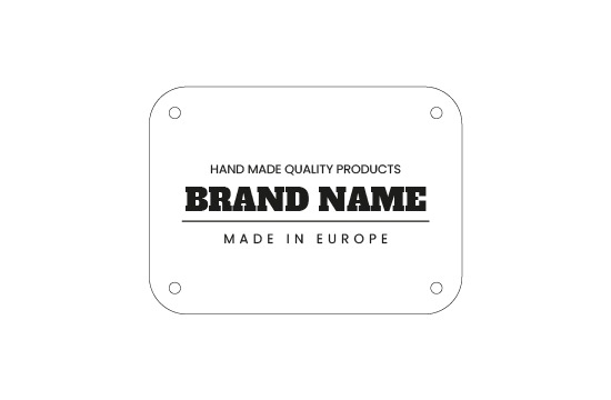 This Faux leather label Model EP-M123 can be customized just in a few seconds, very simply and quickly using the graphic builder, where you can choose the color of the faux leather, you can insert your own logo or any other graphics with a complex design, and you can customize the label with your own text, for example your brand name, a slogan, manufacturer's name, and the country where your product was manufactured.