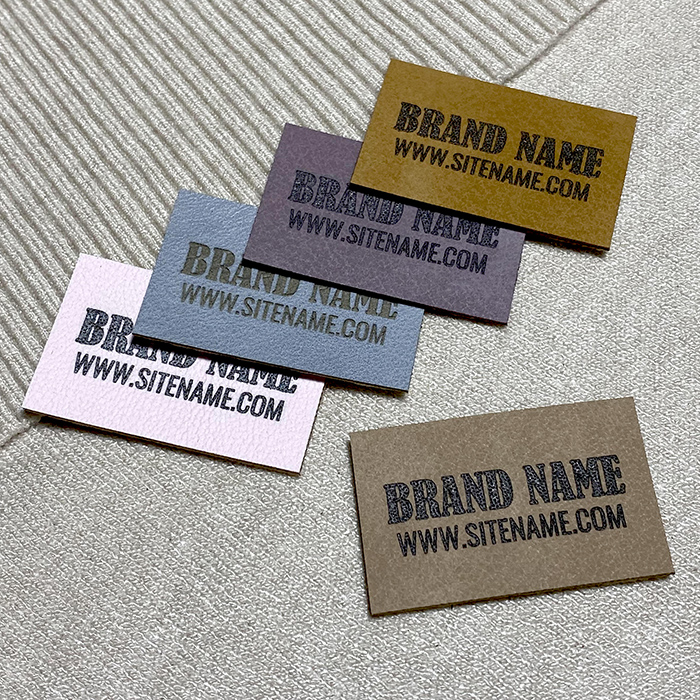 This Faux leather label Model EP-M133 can be customized just in a few seconds, very simply and quickly using the graphic builder, where you can choose the color of the faux leather, you can insert your own logo or any other graphics with a complex design, and you can customize the label with your own text, for example your brand name, a slogan, manufacturer's name, and the country where your product was manufactured.