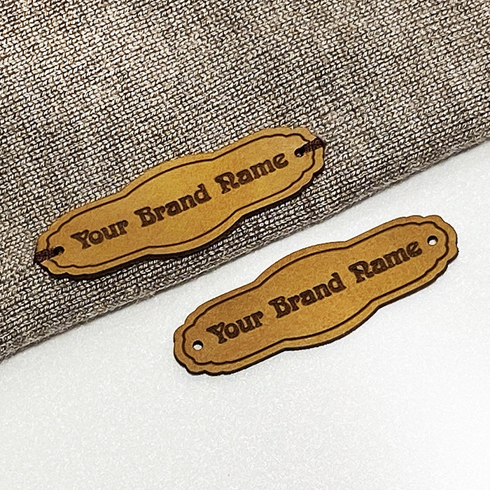 Natural leather label customized with brand name and logo model EP-M15, for sewing on clothes, bags, sweaters, scarves, hats and other products. This leather label model is made of high-quality genuine leather, using the latest generation equipment and professional laser engraving or embossing methods.