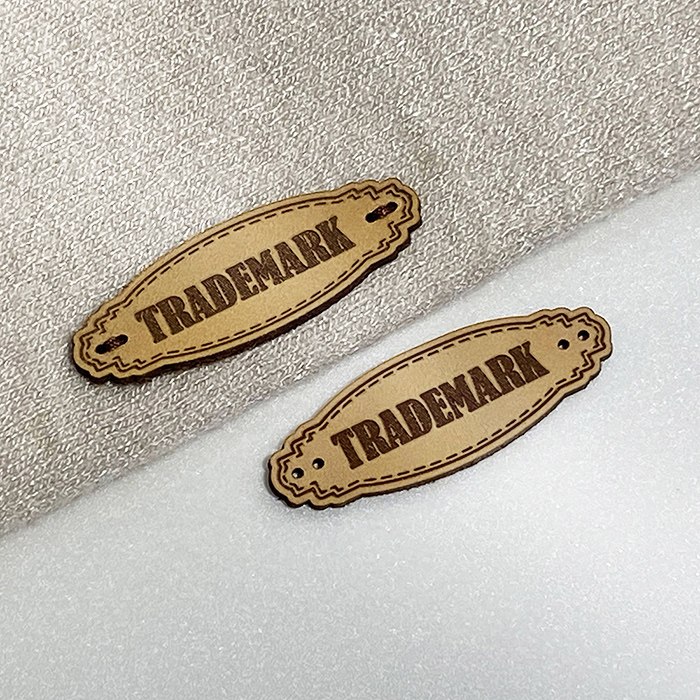 Personalized label made of natural leather Model EP-M2 for sewing on clothes but also on various clothing items and accessories. This leather label model is made of high-quality genuine leather, using the latest generation equipment and professional laser engraving or embossing methods.