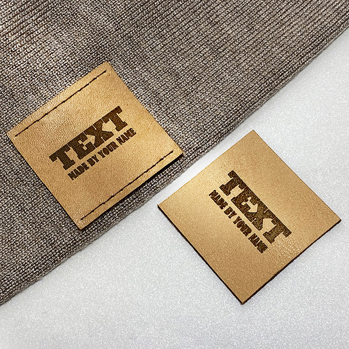 Natural leather label EP-M45 suitable for hoodies, coats, jackets, sweaters, gloves, hats, bags and other clothing products, personalized with logo or brand name. This leather label model is made of high-quality genuine leather, using the latest generation equipment and professional laser engraving or embossing methods.