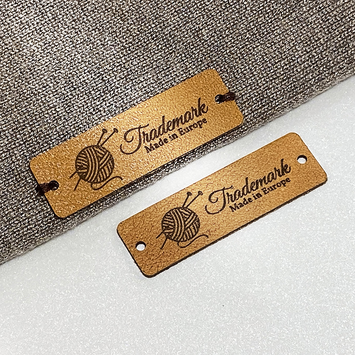 Custom natural leather label for clothes Model EP-M62, with the manufacturer's name or logo by laser engraving. This leather label model is made of high-quality genuine leather, using the latest generation equipment and professional laser engraving or embossing methods.