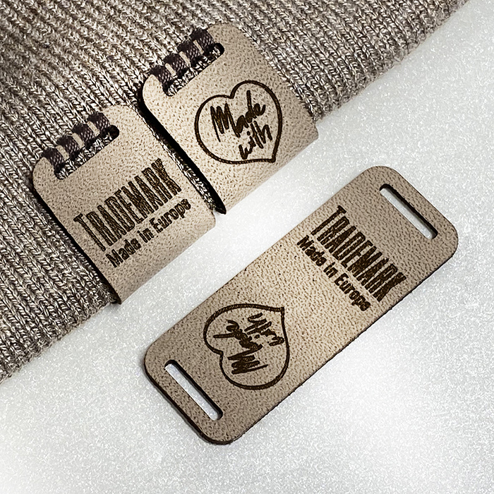 Personalized label EP-M65 made of genuine leather for clothes, bags, shoes and various clothing accessories.