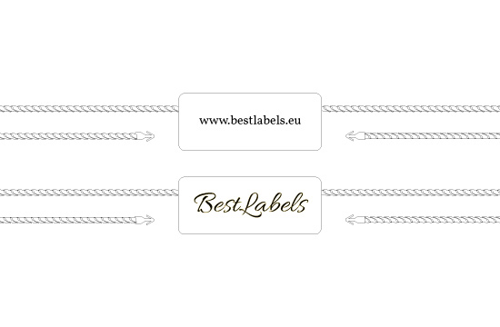 Plastic seal ST-M130 with a simple rectangular shape, customized with a text, Brand name, mark, website, etc., and a logo/emblem, suitable for any type of product in the textile field, clothing, footwear, bags. This type of seal is made of high quality materials, using the most advanced technologies in the field.