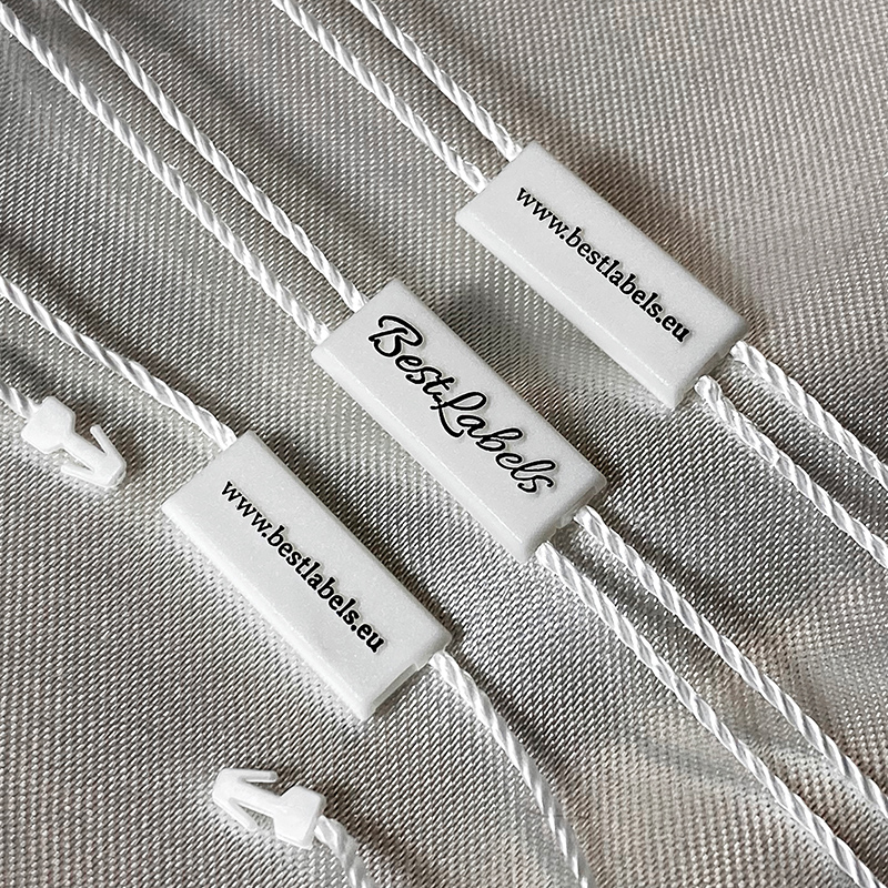 Custom plastic seal tag ST-M130 for fashion products, such as clothes, footwear, bags, jewelry, clothing accessories, etc.