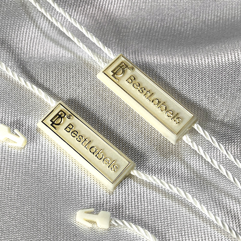 Custom plastic seal tag ST-M143 for fashion products, such as clothes, footwear, bags, jewelry, clothing accessories, etc.