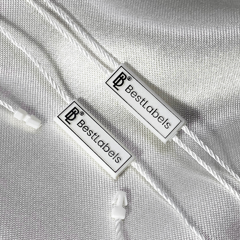 Plastic seal ST-M144 with classic rectangular shape, suitable for various clothing items, ladies' clothing, men's clothing, shoes, bags, jewelry, various accessories. This type of seal is made of high quality materials, using the most advanced technologies in the field.