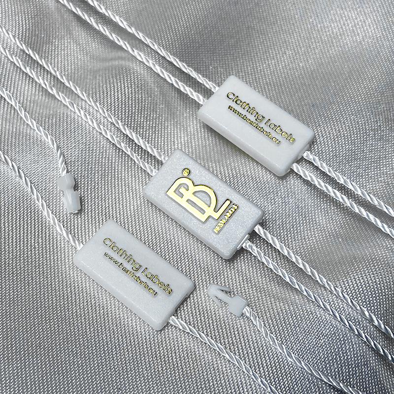 Custom plastic seal tag ST-M192 for fashion products, such as clothes, footwear, bags, jewelry, clothing accessories, etc.