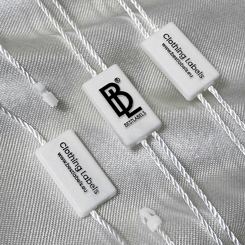 Custom plastic seal tag ST-M194 for fashion products, such as clothes, footwear, bags, jewelry, clothing accessories, etc.