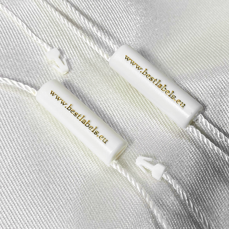 Plastic seal with cylindrical shape ST-M249 and an attractive design and custom text on two sides, suitable for various clothing items such as jeans, pants, ladies and men suits, and many other clothes, shoes and bags. This type of seal is made of high quality materials, using the most advanced technologies in the field.