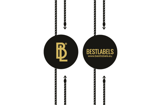 Plastic seal ST-M52 with a round shape, very elegant and beautiful customized on two sides with the Brand name or emblem, suitable for clothes, shoes, bags, etc. This type of seal is made of high quality materials, using the most advanced technologies in the field.