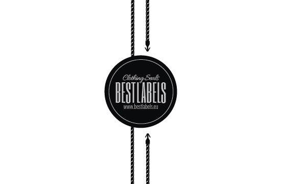 Plastic seal with a round shape ST-M81, customized with a logo/emblem and text/short expression, suitable for various products, such as: clothes, shoes, bags, jewelry and various accessories. This type of seal is made of high quality materials, using the most advanced technologies in the field.