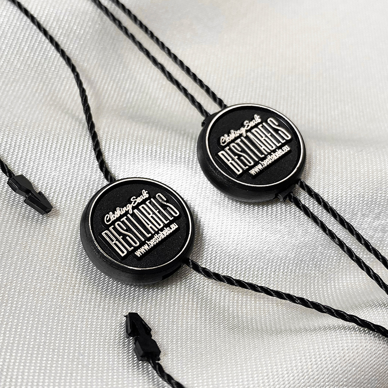 Custom plastic seal tag ST-M81 for fashion products, such as clothes, footwear, bags, jewelry, clothing accessories, etc.