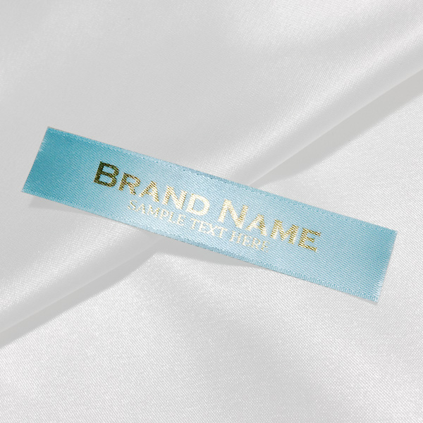 Custom label TL-M116 printed on satin fabric suitable for clothing, clothes accessories, and other textile products.