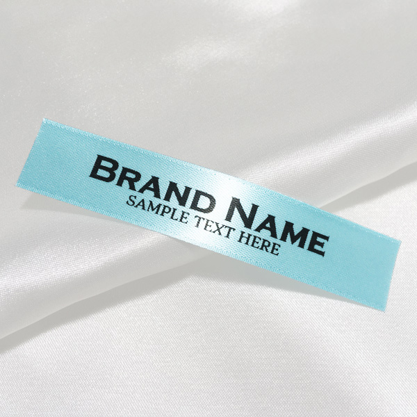 Custom label TL-M121 printed on satin fabric suitable for clothing, clothes accessories, and other textile products.