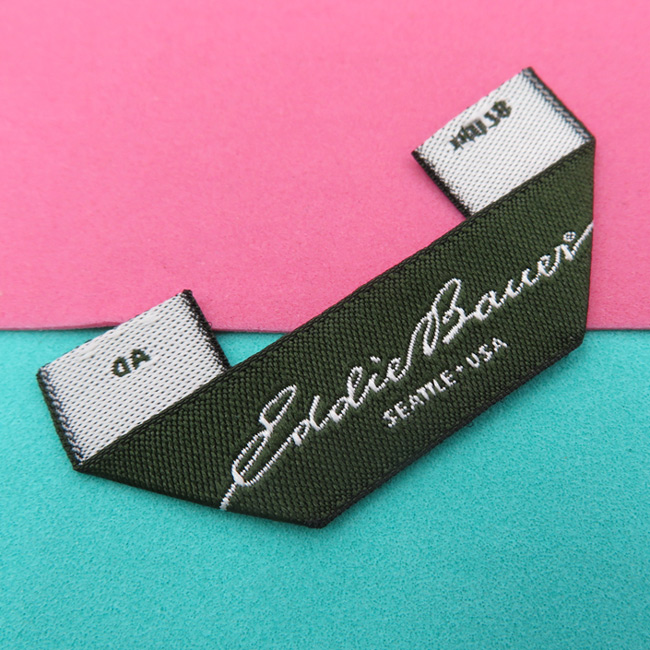 Custom woven label WL-M33 Digital embroidered on a fabric suitable for clothes, clothing accessories, and other textile products.